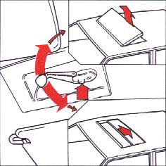 The front and rear sections of the passenger's seat can each be adjusted to two positions. Suitable tools must be used to carry out the adjustments.