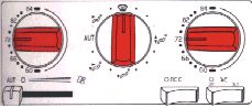 . and move the blower control to the position AUT (as far to the left as possible). The A/C system will be on at this time regardless of the A/C button's position and the blower will run at its maximum speed. When the windows have cleared, set the function selector in the AUT position.