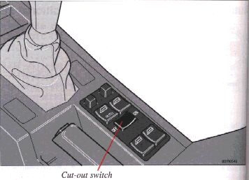 If your car is equipped with electrically-operated rear door windows, this function can be disabled by a switch located on the center console. This switch is positioned 90° in relation to the other switches.