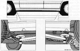 If a garage jack is used to lift the car, the two jack attachments points should be used. They are specially reinforced to bear the weight of the car. A garage jack can also be placed under the front of the engine support frame and under the reinforced plate in the spare wheel well. Take care not to damage the splash guard under the engine. Ensure that the jack is positioned so that the car cannot slide off it. Always use axle stands or similar structures.