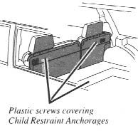 Volvo cars are fitted with Child Restraint Top Tether Anchorages in the rear seat. There are three anchorages under the rear section of the car's rear window shelf on sedans and on the back rest on wagons. The backrest on wagons must be folded down slightly to reach the anchorages. When the car is delivered, the holes for these anchorages are covered by plastic covers. In cars designated for Canada, one top tether anchorage set will be in the glove box.