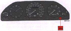 A self-diagnostic system incorporated in the sensor monitors the SRS. If a fault is detected, the "SRS" warning light will illuminate. The light is included in the warning/indicator light cluster in the instrument panel. Normally, the SRS warning lamp will be illuminated along with the other warning/indicator lights when the ignition key is turned to the ON position (position II), and go out a short time after the engine has been started. Check that this light is functioning properly every time the car is started.