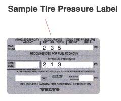 The tires on your Volvo should perform to specifications at all normal loads when inflated as recommended on the tire information label. The label is located on the rear-facing edge of the right-front door. This label lists both tire and vehicle design limits. Do not load your car beyond the load limits indicated.