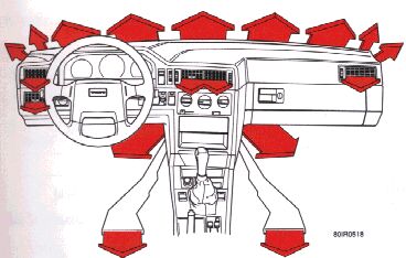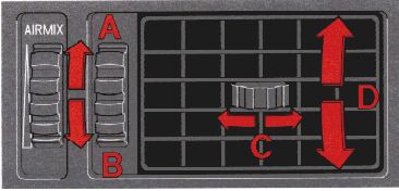 The center panel vents have an air mix function which allows fresh air to enter the passenger compartment when the vents are open (position B). This function is designed to allow you to direct cool air toward you face while directing warmer air to the rest of the passenger compartment.