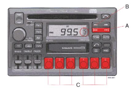 2. Depress and hold a prest button. The audio will cut out. Keep the button depressed until the audio comes on again (approx. 2 seconds).