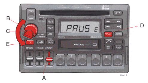 Press the "volume" knob to temporarily mute the sound. "PAUSE" is displayed.