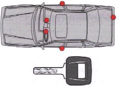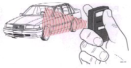 As an option, your car can be equipped with a remote control transmitter. This transmitter uses a radio frequency which will allow "keyless" entry into the passenger compartment or the trunk. You will be supplied with two coded key ring transmitters, which will enable you to lock/unlock all doors and the trunk/tailgate from a distance of 10-15 feet (3-5 meters).
