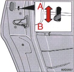 WARNING! Remember, in the event of an accident, the rear seat passengers cannot open the doors from the inside with the buttons in position A. |