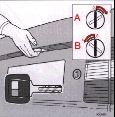 The trunk can also be disconnected from the central locking system by turning the key counterclockwise as shown below: