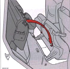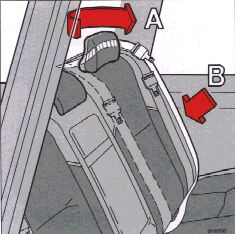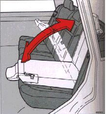 NOTE: If the backrest is folded down for prolonged periods, the seat belt locks could be covered (i.e., with a towel) to help avoid marks on the backrest upholstery.