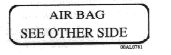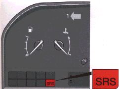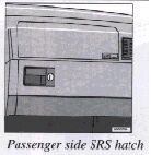 The SRS system is indicated by the "SRS" embossed on the steering wheel pad and above the glove compartment, the knee bolsters beneath the steering column and the glove compartment and decals on both sun visors and on the far right side of the dash.