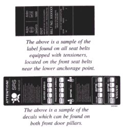 There is no maintenance to perform on the SRS yourself. The only periodic maintenance recommended on the SRS is that the air bag modules and front seat belts (including tensioners) should be replaced approximately every ten years and that the other components in the system (wiring, connectors, etc.) should also be inspected at this time. The SRS decal on your car shows the month and year servicing is due. This service must be performed by an authorized Volvo retailer. Should you have any questions about the SRS system, please contact your authorized Volvo Retailer or Volvo Customer Support.