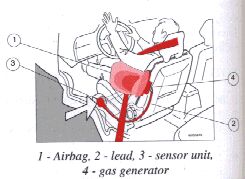 As an enhancement to the structural Side Impact Protection System built into your car, your car is also equipped with Side Impact Protection System (SIPS) airbags. The SIPS airbag system consists of airbag modules built into the sides of both front seat backrests (1), cables (2) from these modules to the mechanical sensor units (3) and gas generators (4).