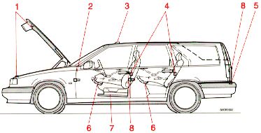 | 1 | Hood lock and latch | Oil | 6 | Window winder (on inside of door) | Oil, grease, low temperature grease |