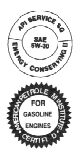 American Petroleum Institute (API) labels. These labels certify the oil conforms to the applicable standards and specifications of the API. |