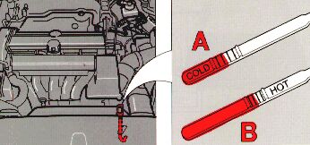 Warm transmission: oil temperature 169° F (80° C). This temperature after driving for about 30 minutes. At oil temperatures above 190° F (90° C), the level may be above the MAX mark.
