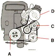 Check the belt regularly to make sure it is in good condition and is clean. A worn or dirty belt can cause poor cooling and low generator output as well as impair the operation of the power steering and the air conditioning unit.