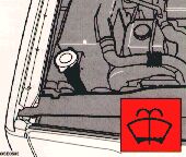 The washer jets should spray the windshield as shown above. Use the edge of a small screwdriver to adjust the nozzles if necessary.