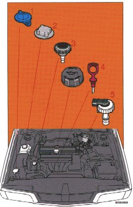 3 Power steering - When cold, the level must not be above the COLD mark and when hot is must not be above the HOT mark. Top up if the level drops to the ADD mark with ATF fluid. See page 8:12.